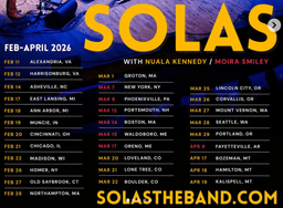 Nuala will be on the road again in the US in February, March, April and May 2026 with Solas, and also in duo with Eamon O’ Leary.